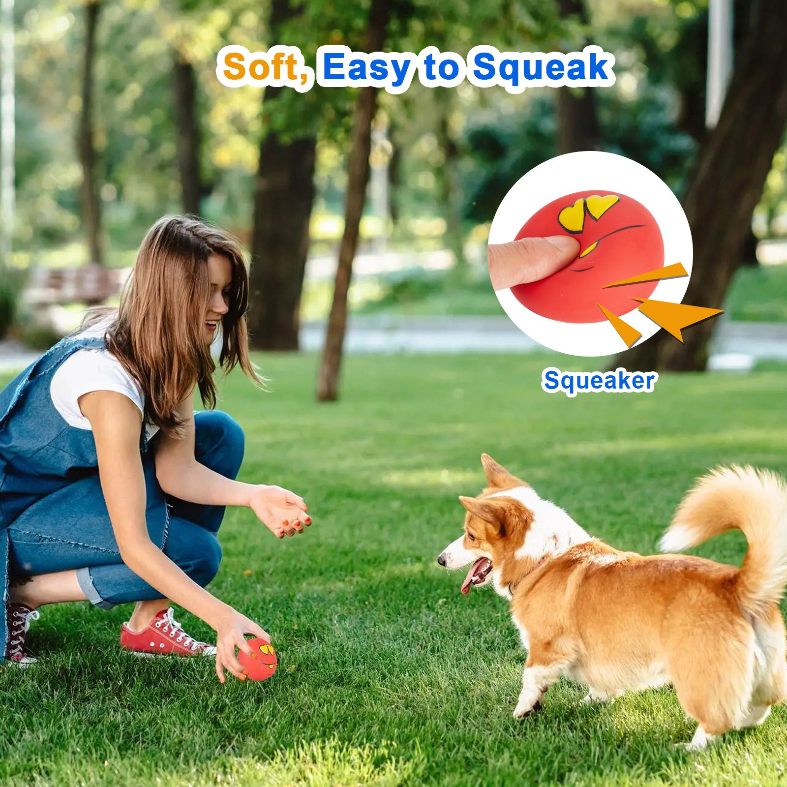- 【Squeaky Toys for Dogs】 Squeak Ball is a toy designed specifically for dogs, made of special materials that make a squeaking sound when the dog bites or grabs it. This sound is very attractive to many dogs, as they constantly bite the ball to maintain the continuity of their sound.