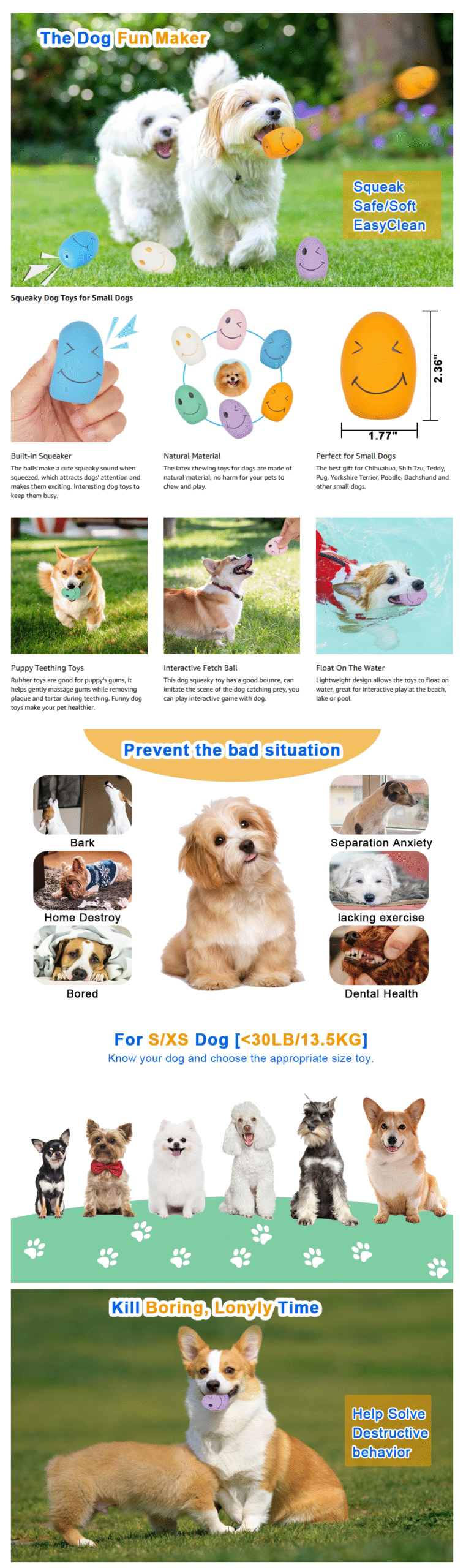 - 【Dog Toys Set with Smiley Face】 6 PCS toys with funny expressions to keep doggies entertained, no need to worry about toys lost under the couch. If you have any problem with your purchase, please feel free to contact us and we will reply asap.